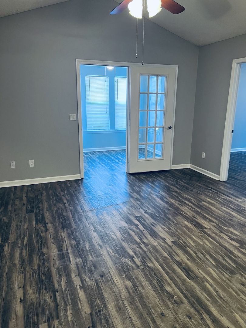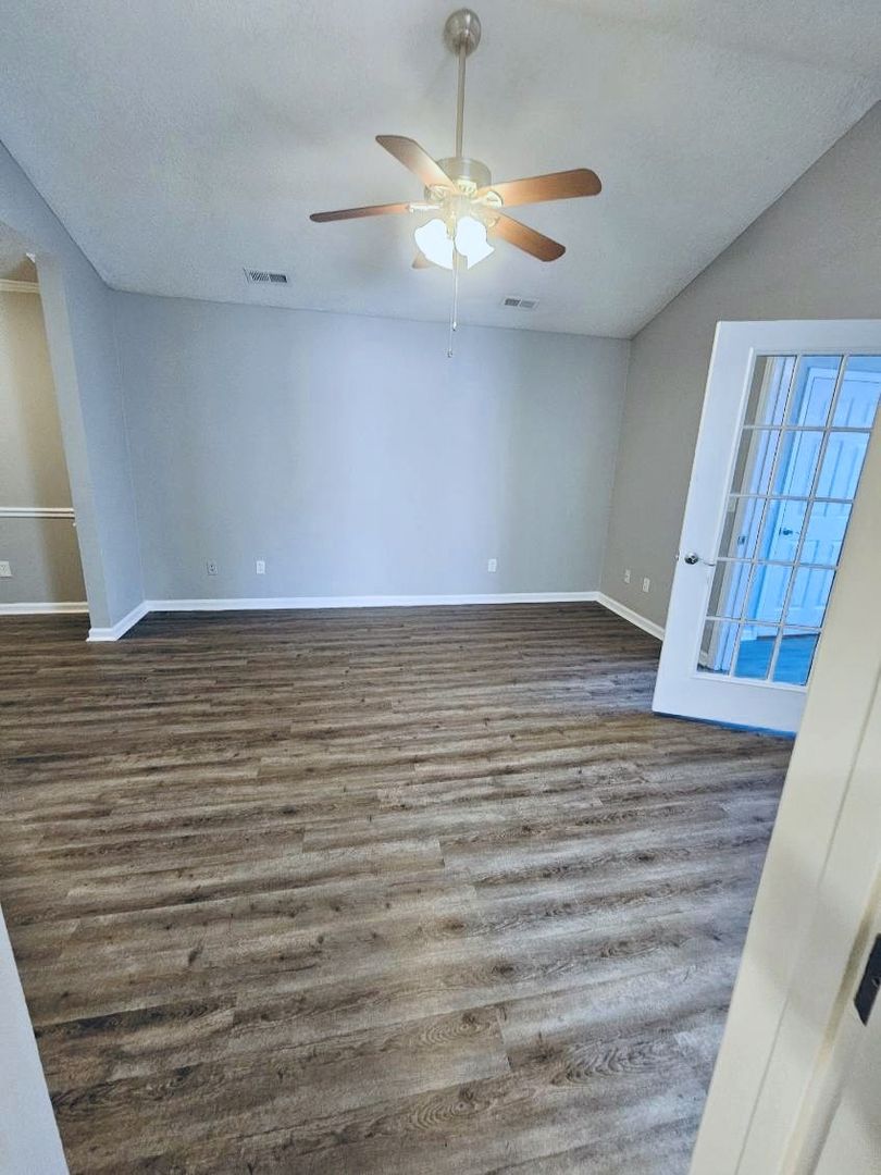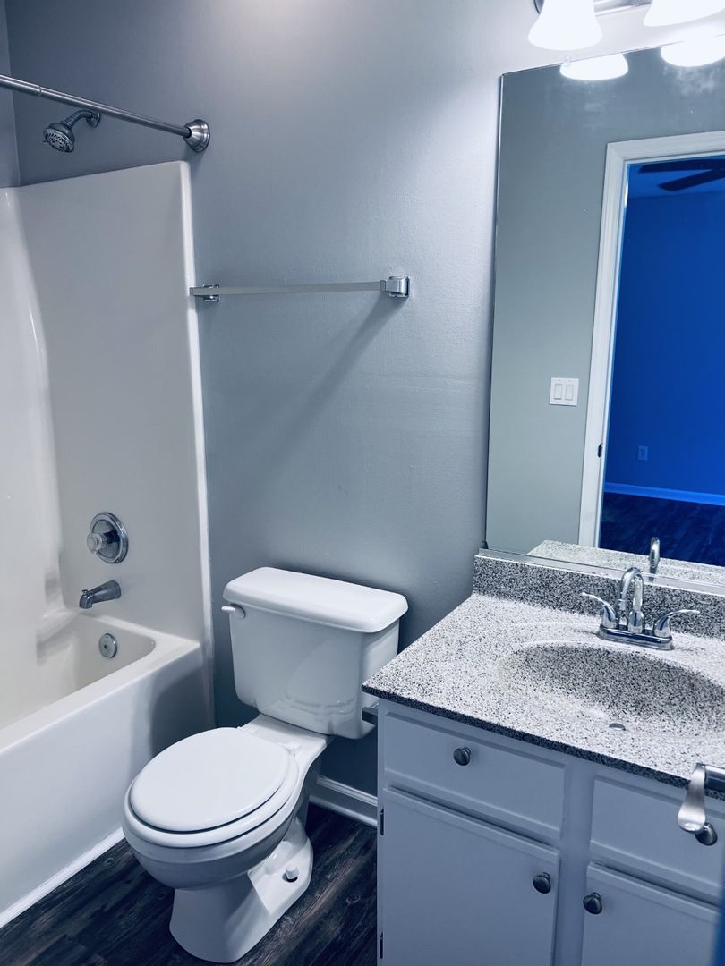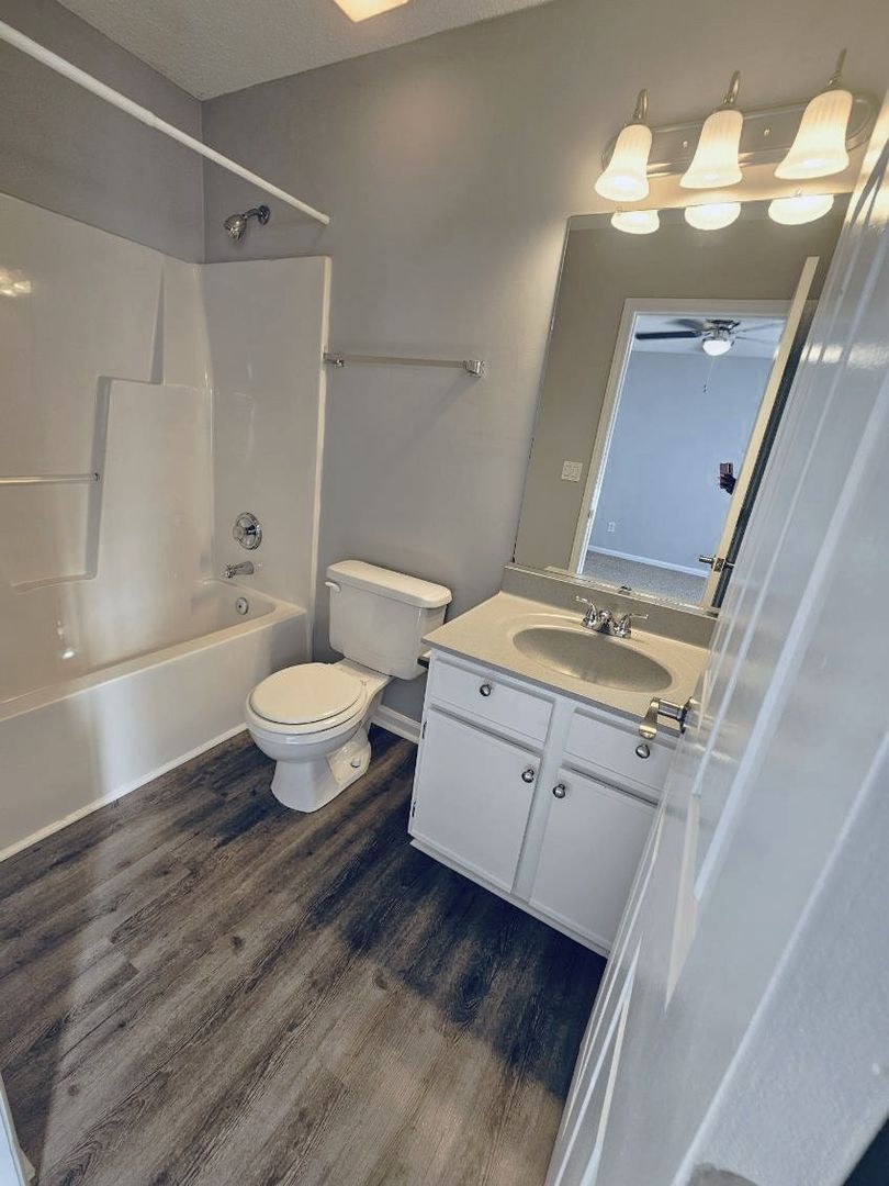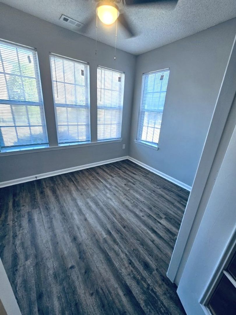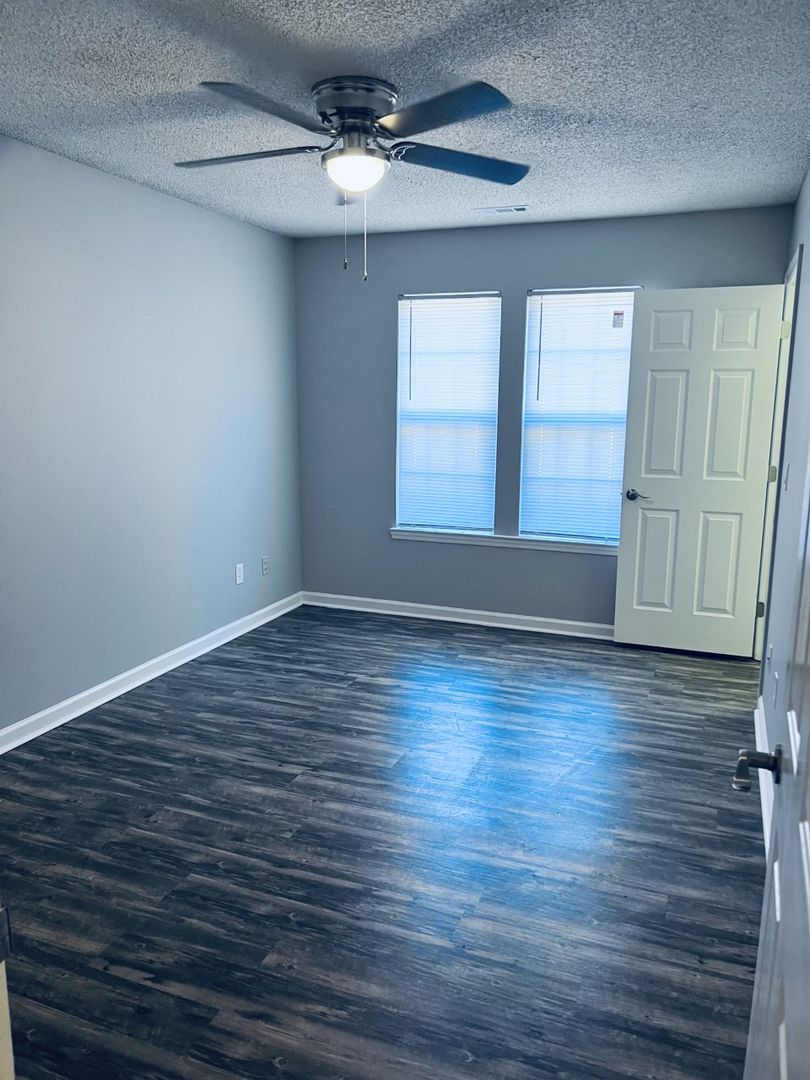 This apartment home is located in a single-story building and includes a flex/bonus room with large walk-in closet. The full-size kitchen with pantry has all appliances including a microwave and opens into the dining and living area. The living room, bonus room and bedrooms all have ceiling fans.  Both bedrooms have en-suite bathrooms and walk-in closets.