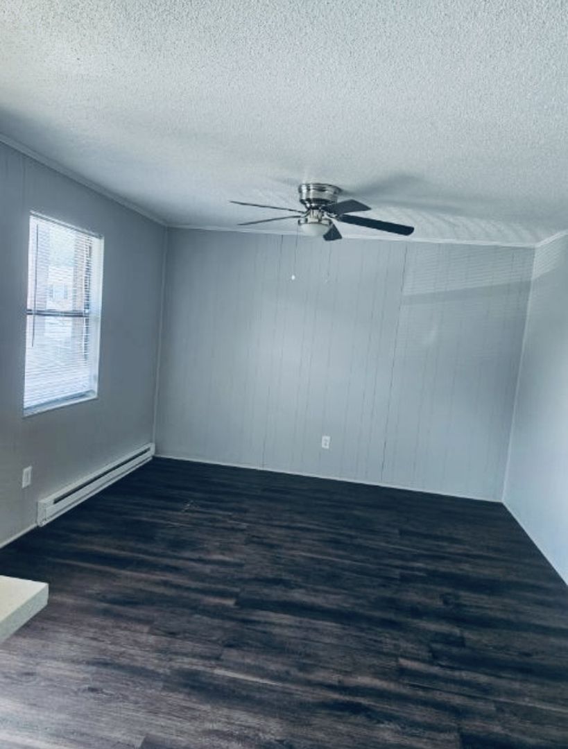 Our spacious 1-bedroom floorplan is the perfect place to call your new home!  The full-size kitchen includes range and refrigerator plus plenty of cabinet space.   The bedroom features a large walk-in closet with ensuite bath and full size washer/dryer connections.  Both living room and bedroom include ceiling fans.