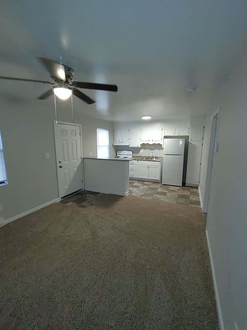 Our spacious 1-bedroom floorplan is the perfect place to call your new home!  The full-size kitchen includes range and refrigerator plus plenty of cabinet space.   The bedroom features a large walk-in closet with ensuite bath and full size washer/dryer connections.  Both living room and bedroom include ceiling fans.