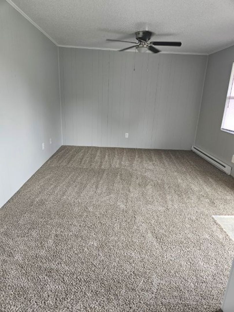 Our spacious 1-bedroom floorplan is the perfect place to call your new home! The full-size kitchen includes range and refrigerator plus plenty of cabinet space. The bedroom features a large walk-in closet with ensuite bath and full size washer/dryer connections. Both living room and bedroom include ceiling fans.