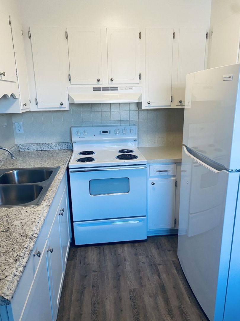 Our spacious 1-bedroom floorplan is the perfect place to call your new home!  The full-size kitchen includes range and refrigerator plus plenty of cabinet space.   The bedroom features a large walk-in closet with ensuite bath and full size washer/dryer connections.  Both living room and bedroom include ceiling fans.