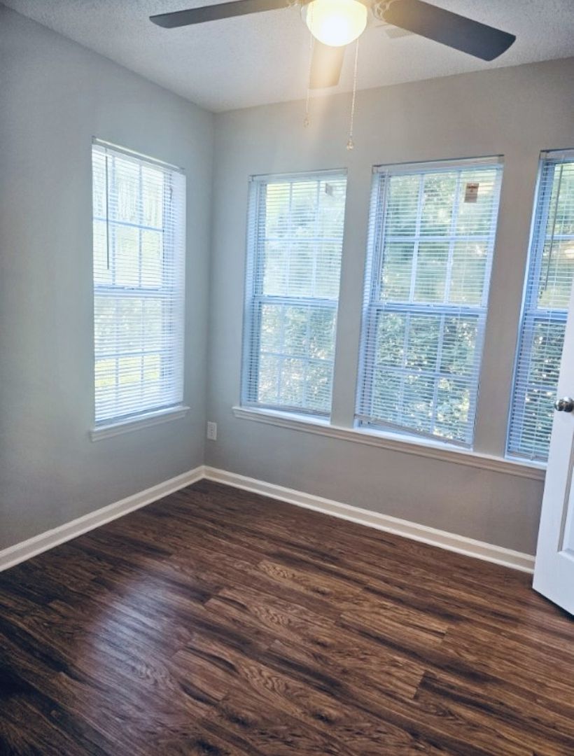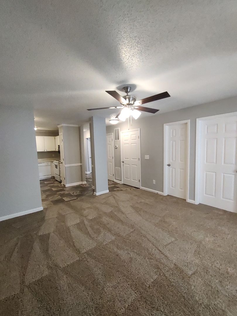 This open and light-filled apartment home includes a flex/bonus room with large walk in closet. The full-size kitchen with pantry has all appliances including a microwave and opens into the dining and living area. The living room, bonus room and bedrooms all have have ceiling fans. Third floor units feature vaulted ceilings in the living room. Both bedrooms have en-suite bathrooms and walk-in closets.