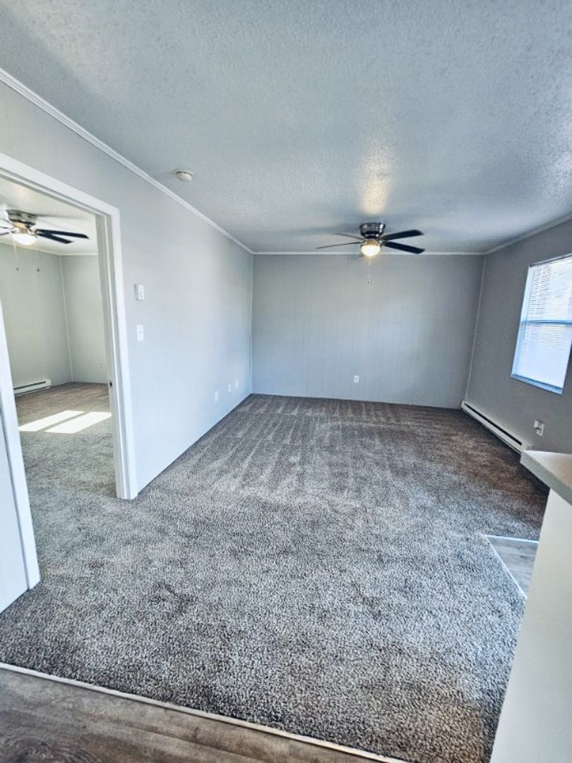 Our spacious 1-bedroom floorplan is the perfect place to call your new home! The full-size kitchen includes range and refrigerator plus plenty of cabinet space. The bedroom features a large walk-in closet with ensuite bath and full size washer/dryer connections. Both living room and bedroom include ceiling fans.
