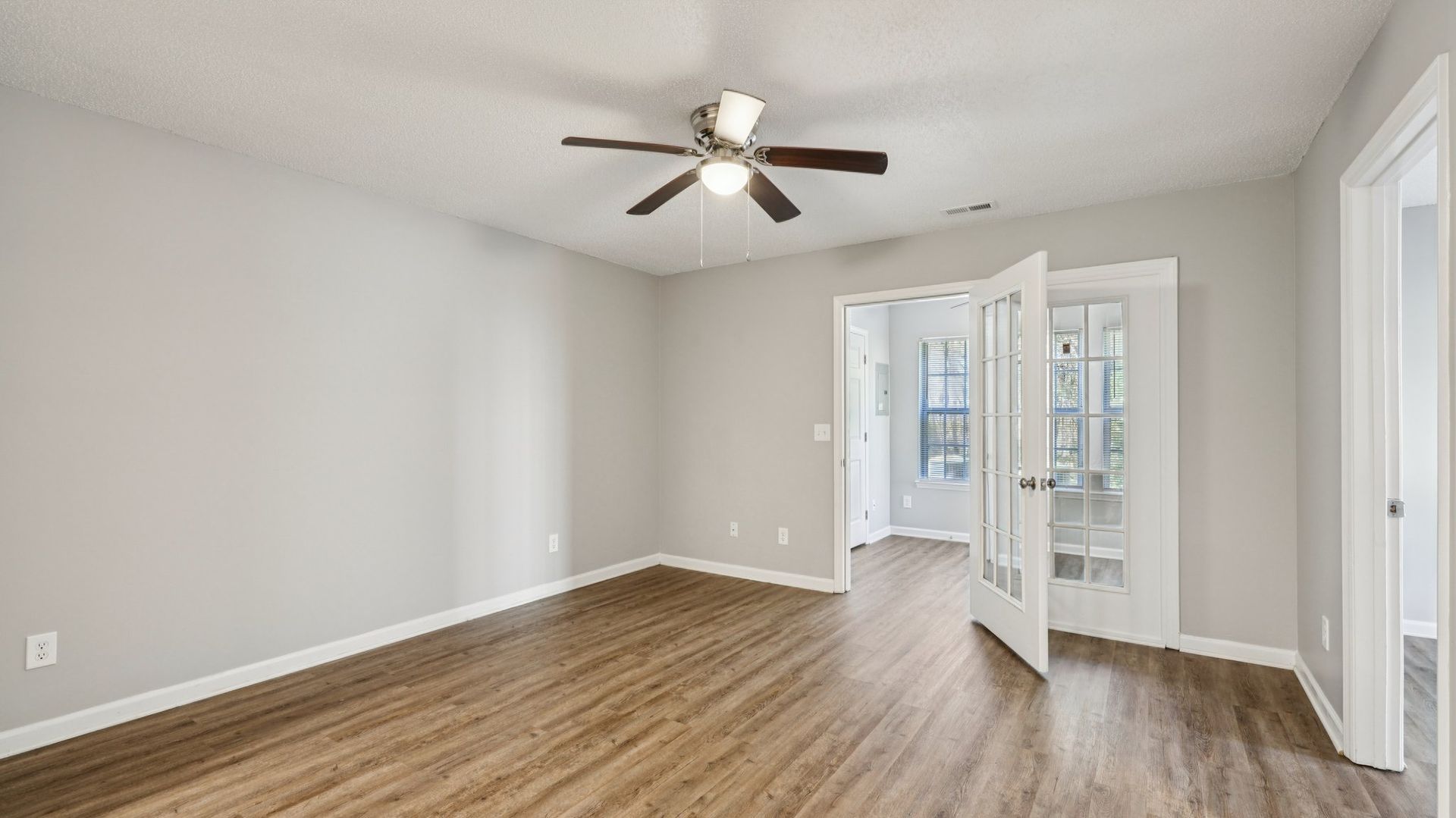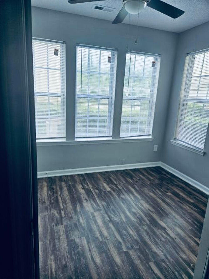 This open and light-filled apartment home includes a flex/bonus room with large walk in closet. The full-size kitchen with pantry has all appliances including a microwave and opens into the dining and living area. The living room, bonus room and bedrooms all have have ceiling fans. Third floor units feature vaulted ceilings in the living room. Both bedrooms have en-suite bathrooms and walk-in closets.